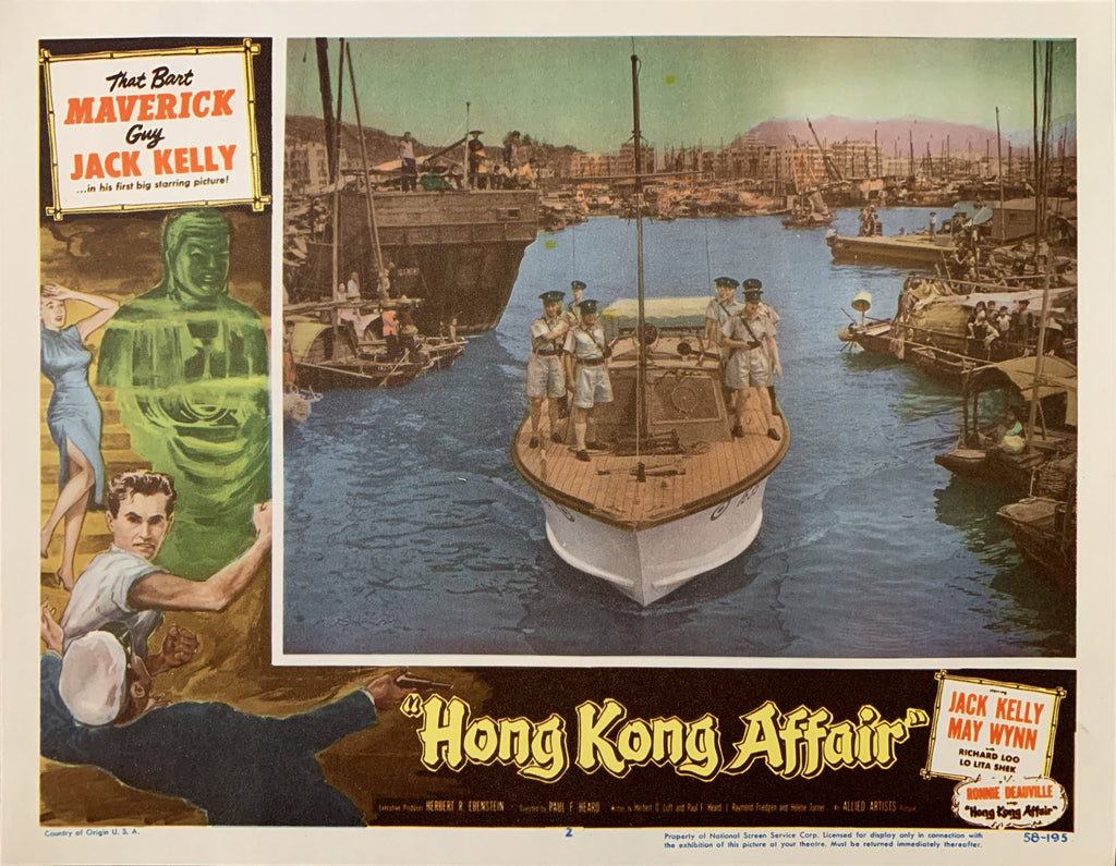 1958 Crime Movie: Hong Kong Affair. Directed by Paul F. Heard. Starring: Jack Kelly, May Wynn, Richard Loo, Lolita Shek, Louis Jordan.